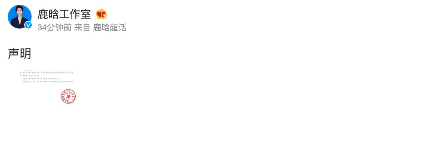 9月5日,@鹿晗工作室 发声明称:爱彼品牌公开发表的不当言论,严重违反一个中国原则。我方敦促爱彼品牌以中英文对照方式在全球平台上公开致歉,反复沟通未果。基于此,鹿晗即日起终止与爱彼品牌的合作关系。