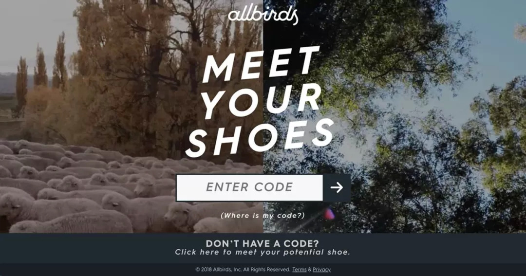 2018年,Allbirds 还在推出 Meet Your Shoes 宣传活动,让用户探索自己的 Allbirds鞋采用的原材料。Allbirds为此次活动还推出了2支幽默短片,片中穿着 Allbirds 鞋的主人公跋山涉水,来到“源头”邂逅了自己所穿鞋的各种原料。用户在交互式网站Meetyourshoes.net 输入产品代码,跳转至相关视频链接即可看到产品原材料来源。