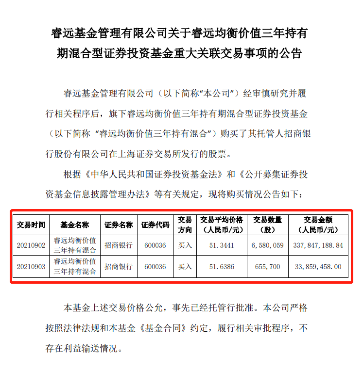 因为招商银行为该基金的托管行,基金买入托管行的相关个股,属于重大关联交易事项,因此,该行为得以被披露。