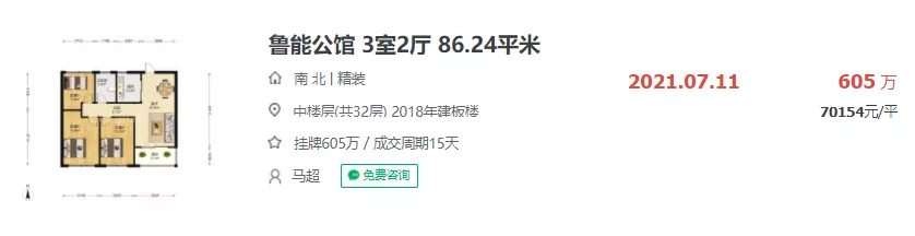 据链家网显示,鲁能公馆最近的一次成交为7月11日,成交单价70154元/㎡,成交周期仅15天。
