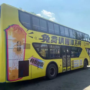 但元气插座所在的城市,仅有一个线路有双层巴士,他们把双层巴士全部承包,在车体广告上推荐“杨枝甘露”。