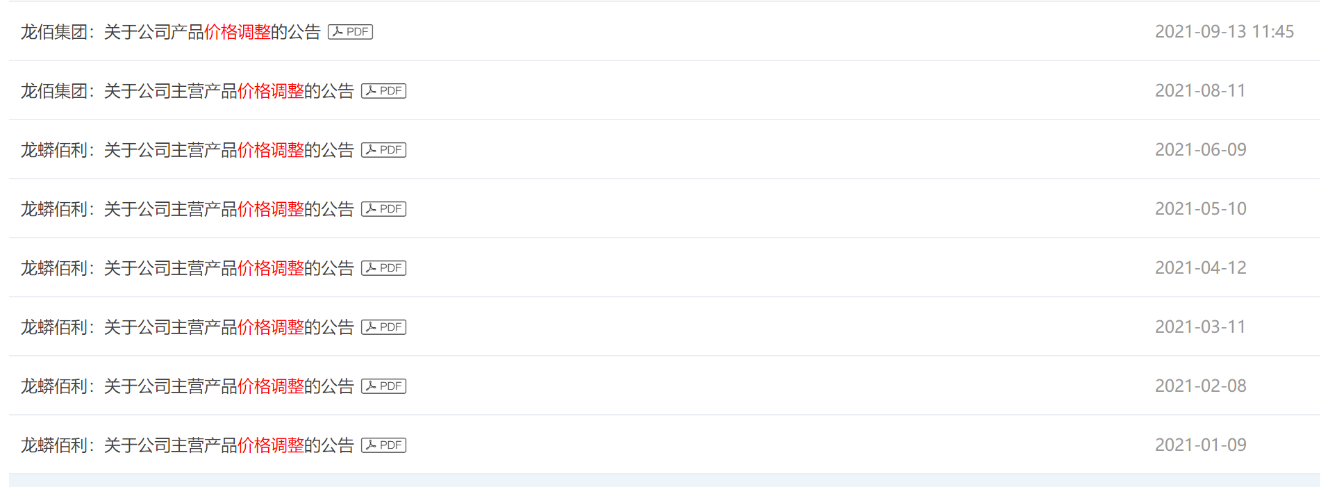 今年来,对产品价格的调整,龙佰集团已披露过多次,上一次调价的披露时间为8月11日,公司将各型号钛白粉(包括硫酸法钛白粉、氯化法钛白粉)销售价格在原价基础上对下游各类客户上调200美元/吨。