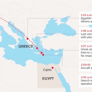 下面是埃航MS804航班从起飞到失联前发生的事情(所有时间使用的都是巴黎或开罗当地时间,两个地方处于同一个时区):