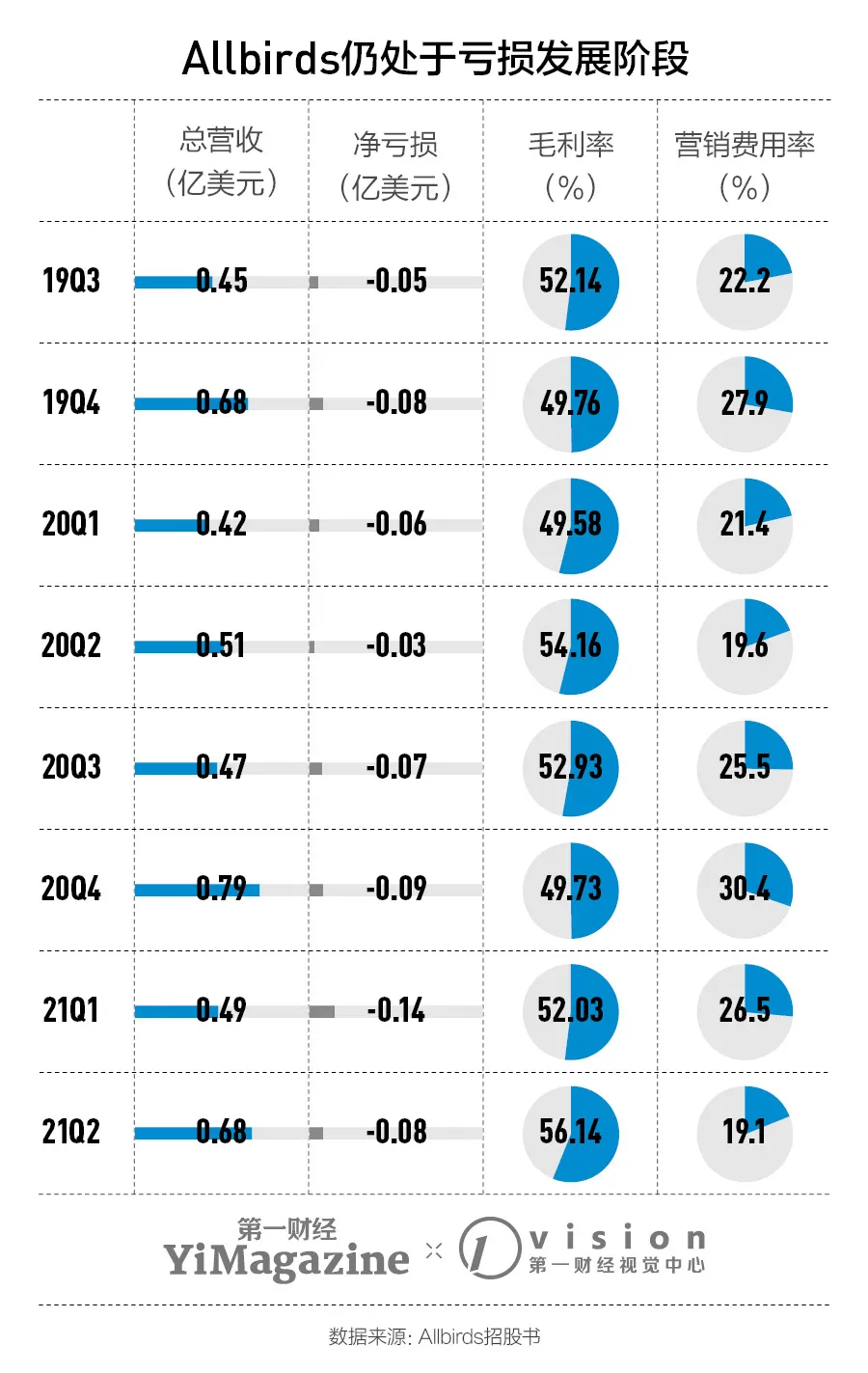 虽然成功上市,但Allbirds的规模仍与运动巨头们相去甚远。财报显示,Allbirds 2021年Q1的营收是0.49亿美元,同期Under Armour收入12.6亿美元,adidas营收62.16亿美元,Nike则为105.94亿美元。而且, Allbirds尚未实现盈利,2020财年公司的整体净亏损在0.26亿美元左右。