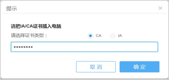 插入CA证书,输入正确的CA密码,点击[验证]按钮继续操作。