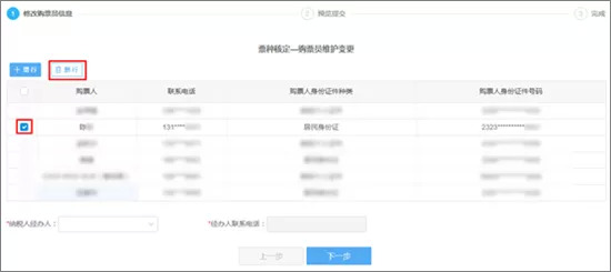 删除领票人:勾选需要删除的人员行次,点击删行进行删除。