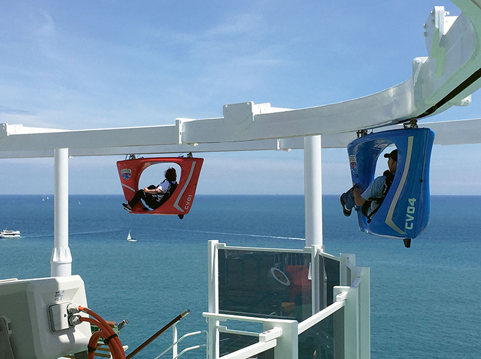 Vista上最会让乘客满意的一款新设施就是SkyRide,这款空中自行车的项目能让你享受在150英尺高的水面上环行,整体的游乐时间大约在2分钟。虽然这款项目看似更吸引孩子,但船方表示现今最年长的体验者是87岁。现在航线的大约排队时间在40分钟左右,不过我相信在暑期线到来时会有所增长,孩子嘛,你懂的。