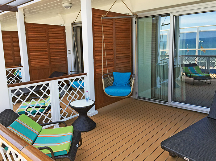从性价比来说,Vista的整体设计可以算是中端的嘉年华邮轮品牌最为典雅的了。不过它也有一些明显的缺点,比如床头没有USB插口对于新造的船来说实在是不太合理。最初设计中的哈瓦那套房阳台会配备吊床,因为阳台空间有限,则整体调整成了摇椅。