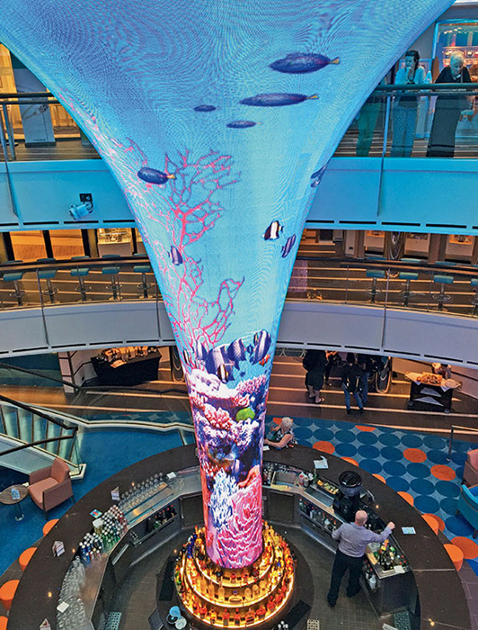 IMAX巨幕的引入似乎不需要经过太多的决策,这是一笔很好的买卖。嘉年华集团用了整整三层的空间来放下178个座位,当然在邮轮上安装这么一块巨幕不是件容易的事情。“这是一项艰巨的挑战。”IMAX公司的首席执行官Rich Gelfond说道。整体的安全性能以及影片的引进与版权都需要在前期与后期进行大量的工作,毕竟如果能同期播放最热门的影片,那无疑会给Vista增色不少。