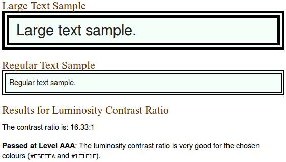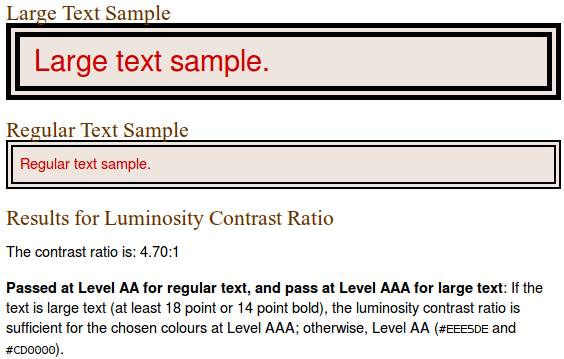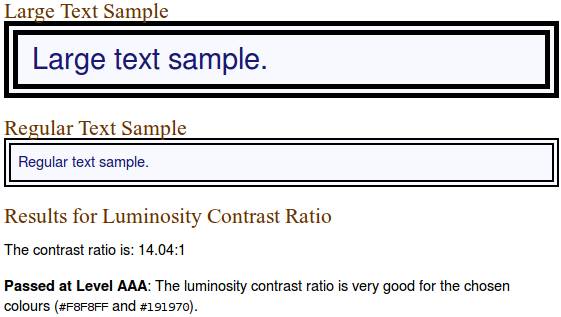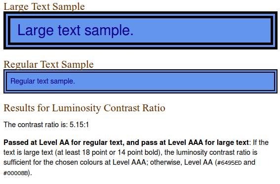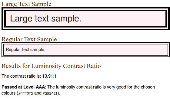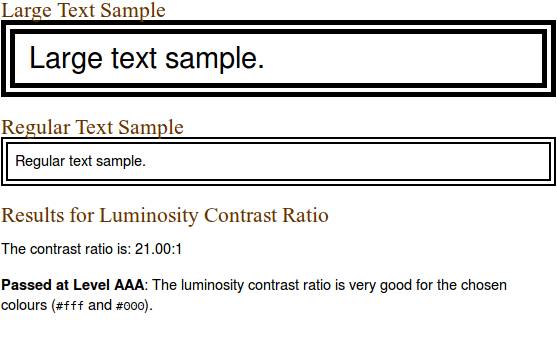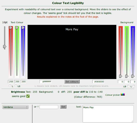 色彩明度的差距范围是125,色彩的差距范围是500。这些公式看上去很复杂,但是当你用核算色彩值的工具时,就很容易明白你的配色是否通过了测试,比如色彩文本可读性工具(Colour Text Legibility tool)和色彩对比工具( Colour Contrast tool),除非你想要探寻新的配色方案,不然就保守使用传统的配色,也是不错的选择。