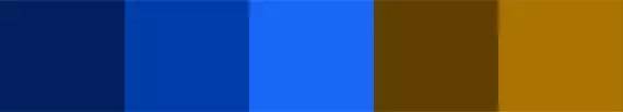 组合明亮电子感的蓝色和暗色或者灰棕色搭配有种神奇的效果。如果蓝色是主色,这样的搭配会给人冷酷的感觉,但同时也能产生能量。这样的蓝色和其他金属感的深色搭配也不错。