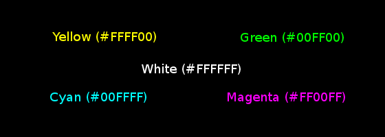 深背景让人很沮丧,不仅仅因为深色在传统文化里经常和不好的事物联系在一起,还因为给深背景选择一个易读的前景色很痛苦。问题就在于,就算你的对比度是好的,文本看起来也未必具有易读性。黑底白字可能比例是好的,但是眼睛很快就会累。就像Pabini Gabriel-Petit 说的:“在黑色的背景上,饱和的黄色(#FFFF00), 绿色 (#00FF00), 蓝绿色(#00FFFF), and 洋红 (#FF00FF) 的对比度是最好的。”