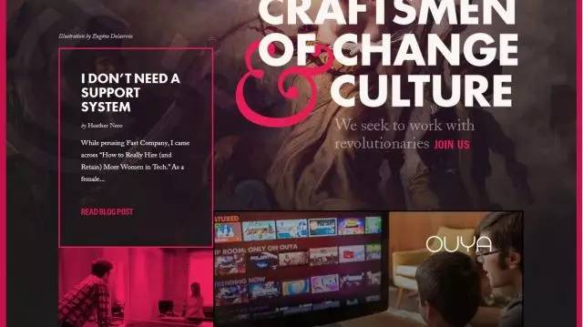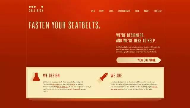 大且大胆,这些网站设计都是真正专注细节的案例,包括色彩、字体和位置。这些细微的部分将对设计产生巨大影响。这样的设计对设计师而言是有风险的,用户看到如此大胆的用色有可能会过于震惊,但是设计师们冒了险,看看最终他们得到了什么。用户看到了好多配色和大胆的界面。有收获吗?下一节,我们将讨论更多蓝色的组合。
