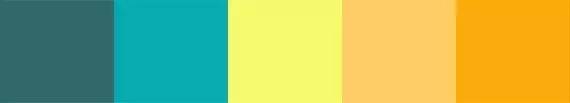 在黄色和橙色的配色中加入蓝色,能给整个设计降温。传统上橙色和蓝色是互补色,不过黄色和蓝色搭配效果相近。