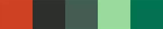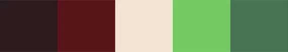 组合绿色的互补色是红色。理论上合适的比例是50:50。但是这对组合不应该作为主色,而是用来提升活力,否则会像圣诞节。另一种方式使用橙色代替红色。对朴实的质感,棕色是显而易见的选择。深绿色和深棕色,饱和度降低,会创造一种忧郁的气质;深棕色搭配亮绿色,能够突出重点,而且不会太刺眼。蓝色和偏蓝的绿色组合很有温润。但如果再和红色搭配,就需要注意层次感。只用这两种颜色,会让眼睛不舒服,但是他们和深灰色组合起来会很棒。