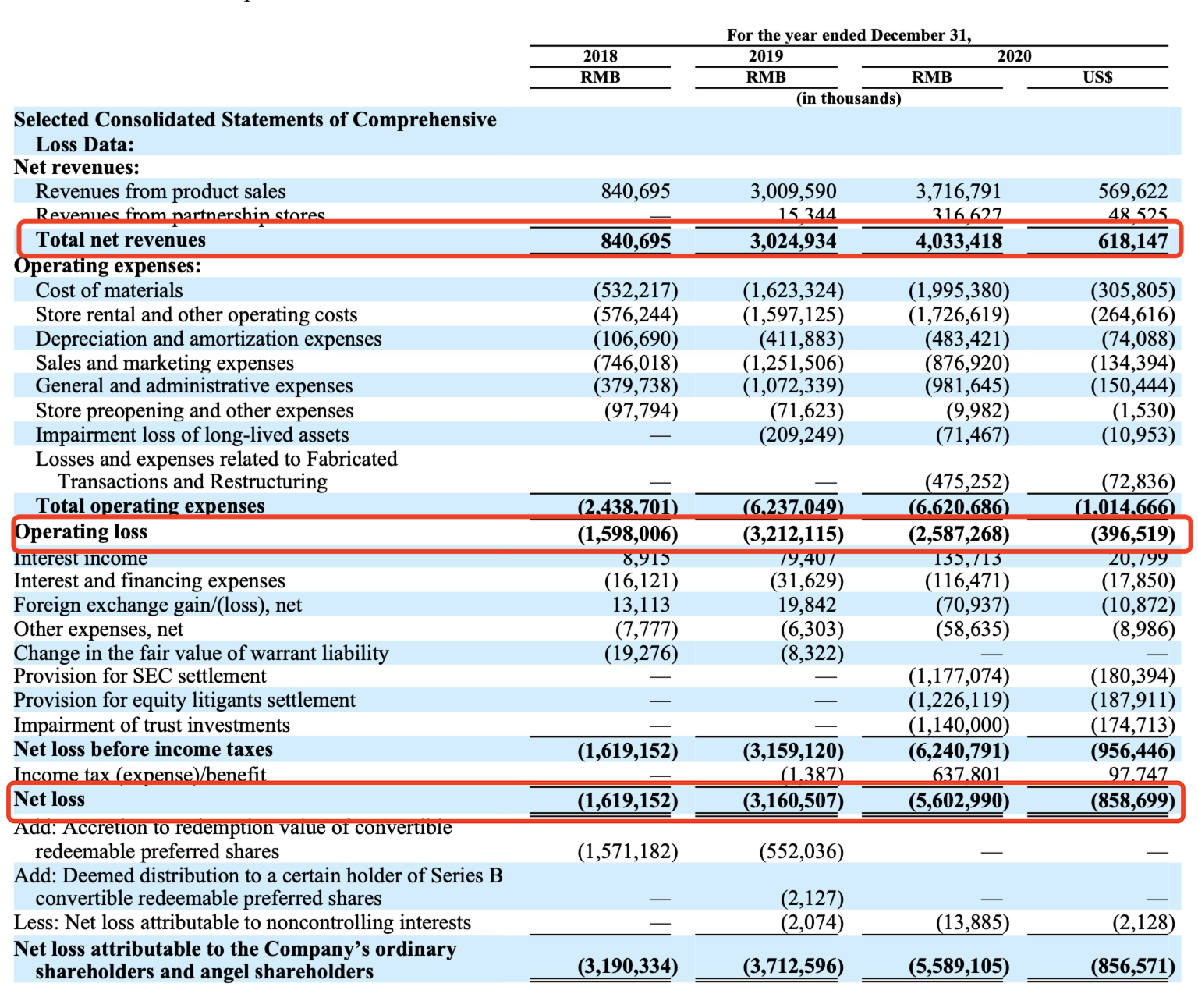 算下来,瑞幸2020年的运营亏损额为25.87亿元,较2019年的32.13亿亏损有所收窄。净亏损近56.03亿元,比上年同期增长77.25%,原因与SEC结算条款、信托投资减值等相关。