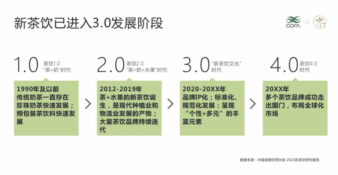 茶饮3.0 “新茶饮文化”时代,这也就是目前新茶饮所处的发展阶段——资本推动行业进一步快速发展,疫情加速行业洗牌,供应链的发展、人才的涌入、数字化运营建设都成了品牌发展的关键性因素;