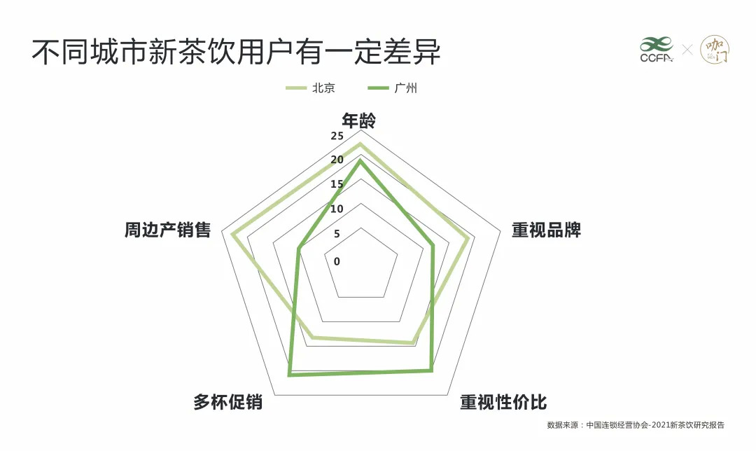 《报告》对北京和广州两个城市会员进行抽样调查分析,结果显示:北京地区消费者比较“重视品牌”,而且“杯子等周边产品销售较好”;广州地区消费者更加“重视性价比”,而且下午茶时多杯购买已经形成一定习惯,“多杯促销”转化率较高。