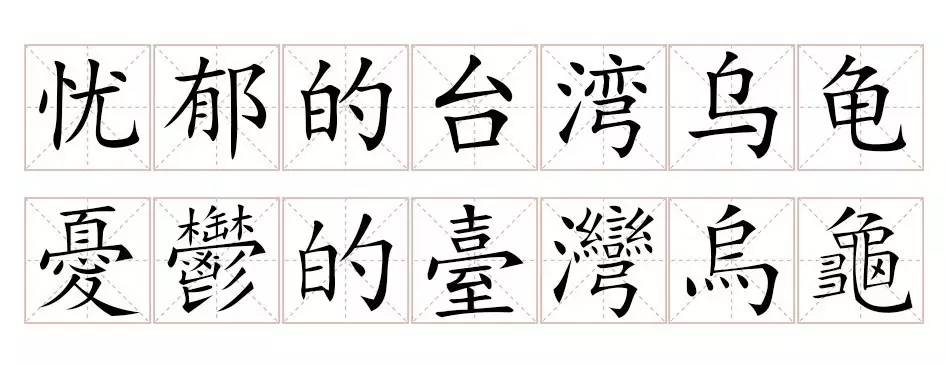 台湾科学家做了个有趣的实验,让台湾和大陆的小朋友同时抄写“忧郁的台湾乌龟”100遍。经过观察,他们发现台湾的小朋友抄了十几遍后就不耐烦了,而大陆的小朋友全部都能坚持抄完。