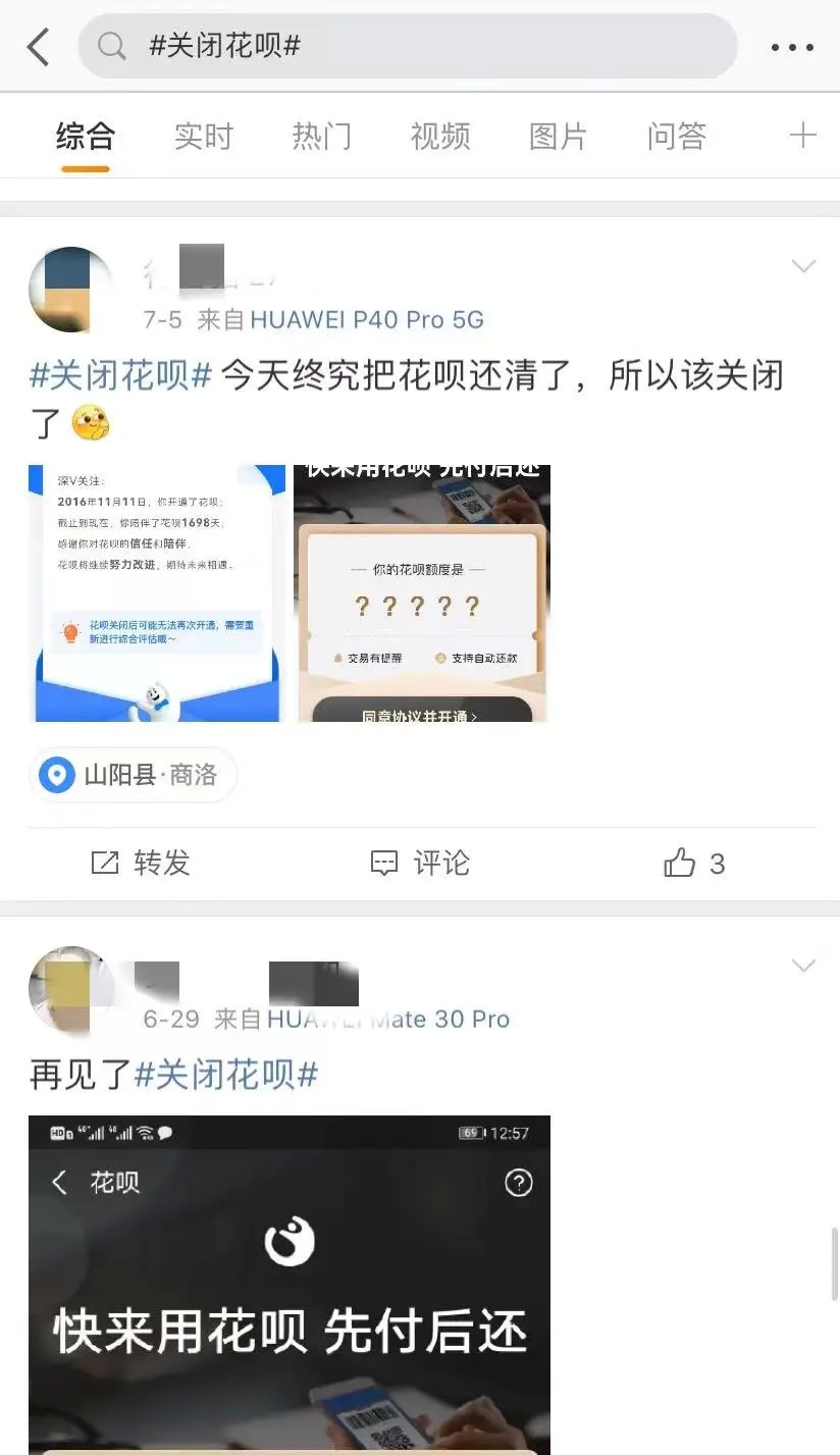 “关闭了一个花呗账号,现在努力关闭第二个”
