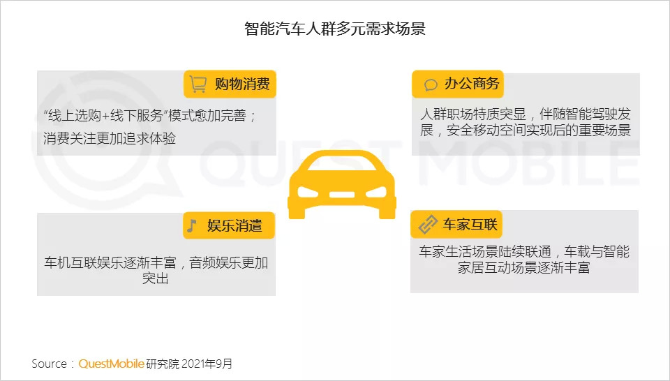 1、智能汽车人群拥有较高的线上消费能力及意愿,市场也围绕智能汽车延伸出多元的消费服务场景
