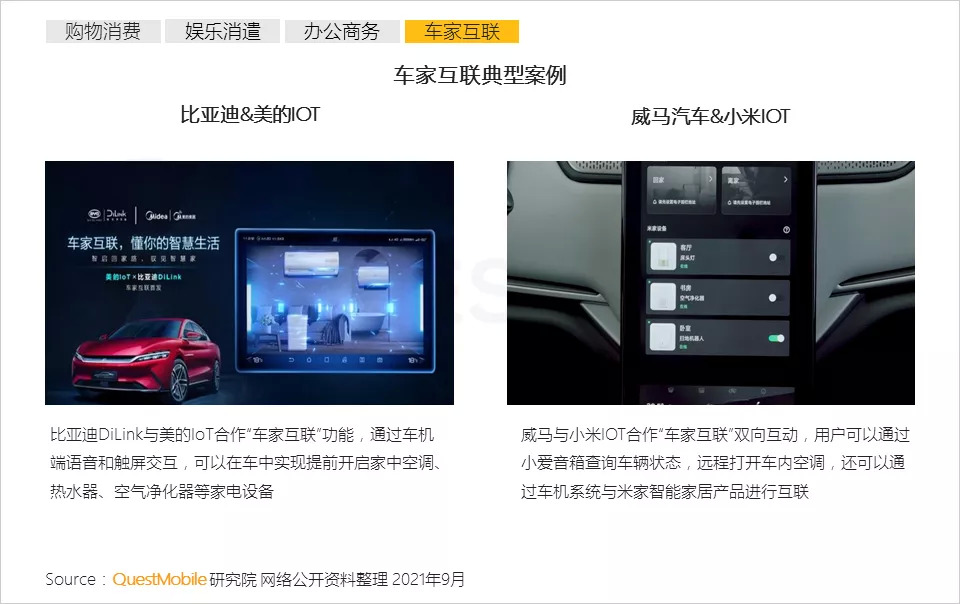 8、智能汽车厂商与智能家居企业强强合作,共同探索车载场景与智能家庭场景的联通,为用户带来更加便捷的智能生活体验