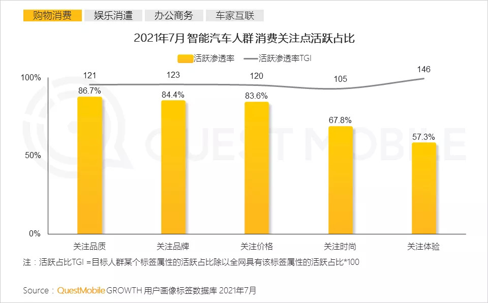 3、智能汽车人群消费注重品质及品牌,对于性价比也是其重要的消费关注点,车机及多端联动带来的互动感,加深该人群对于体验的关注偏好