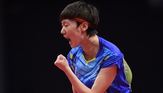 第四局伊始王曼昱气势更盛,但背水一战的孙颖莎放下包袱,不断的套路变化让王曼昱应对不及,“小魔王”在局中处于领先。王曼昱坚持战术,依然用强势的反手不断追分,并又一次在局末反超。