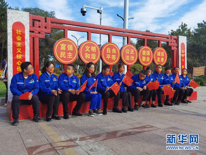 9月25日,新疆天业(集团)有限公司的员工在军垦博物馆开展团建活动,图为员工合影留念。