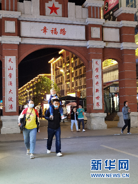 石河子市幸福路商业街游人如织,随处可见怀旧主题的商铺,将“军垦记忆”融入到商业街,这里已成为石河子市夜经济的网红打卡地。