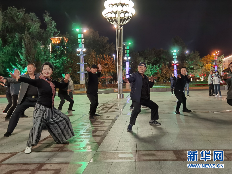 9月25日晚,郭秀华正在广场排练即将献礼新中国成立72周年的舞蹈。她告诉记者,每年党的生日和国庆节,她都要排练舞蹈庆祝。