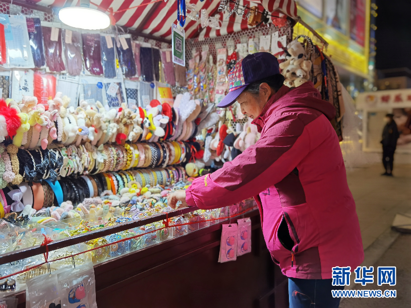 图为张瑞兰在整理货品。新华网 詹婧 摄