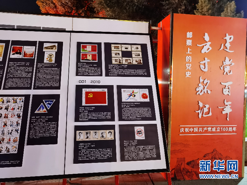 图为石河子街道上的一处党史展板,像这样的微型红色文化展在石河子市随处可见。
