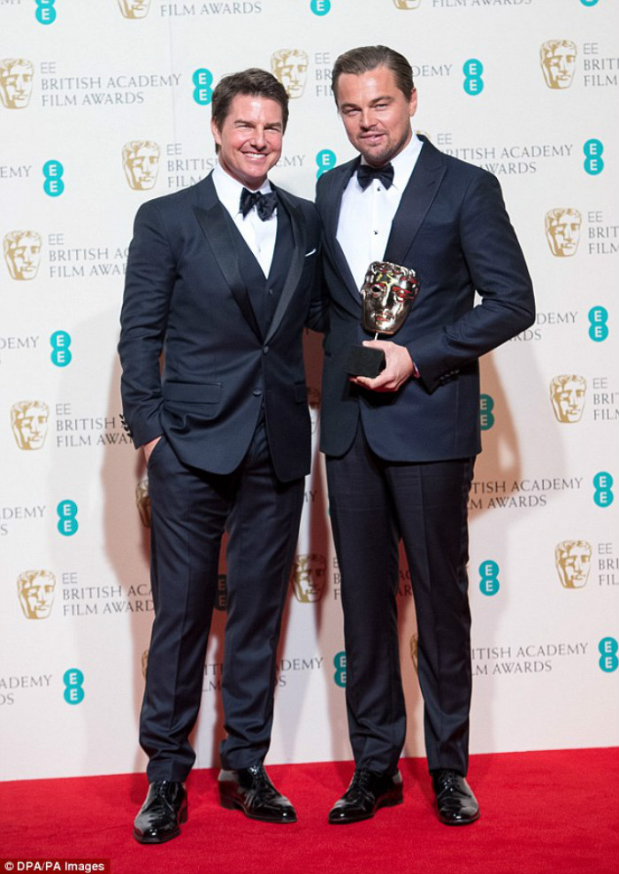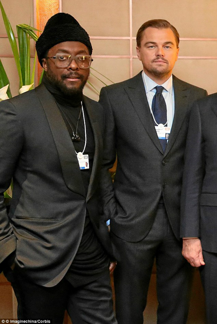 小李子与汤老师(Tom Hardy)的合影。1月14日,小李子飞往伦敦,参加在莱斯特广场举办的《荒野猎人》首映仪式。这次旅程乘坐的是电影公司提供的私人飞机,总计8756.44千米,释放了近40吨二氧化碳。