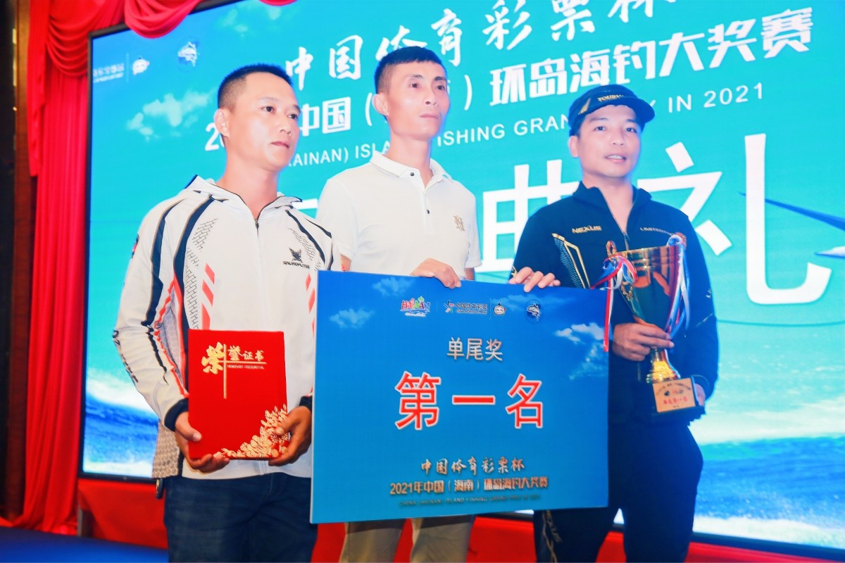 获得最重单尾奖前三名的队伍为:陵水海钓联盟、海口突击队、海南渔掌柜休闲海钓俱乐部。