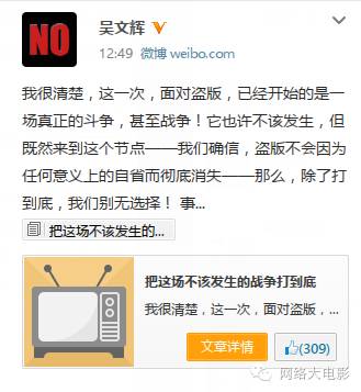 而昨天中午,起点创始人、阅文集团CEO吴文辉发送名为《把这场不该发生的战争打到底》的长微博,含沙射影的对“一些互联网领袖”的纵容甚至参与盗版的行为进行攻击。
