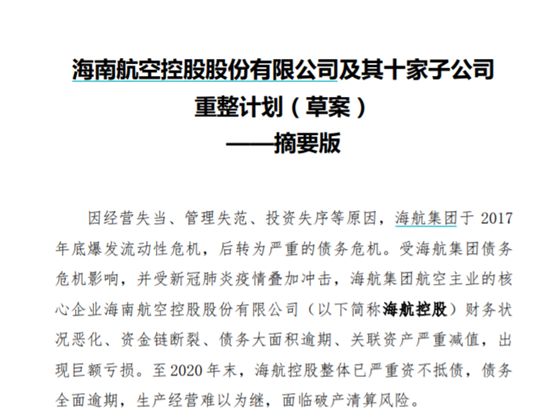 继26日《海南航空控股有限公司及十家子公司重整计划(草案)》出炉后,27日,海航航空主业召开第二次债权人会议,进一步披露重整方案细节,并再次陈述公司目前的状况。会后,公司公告披露了草案摘要版。