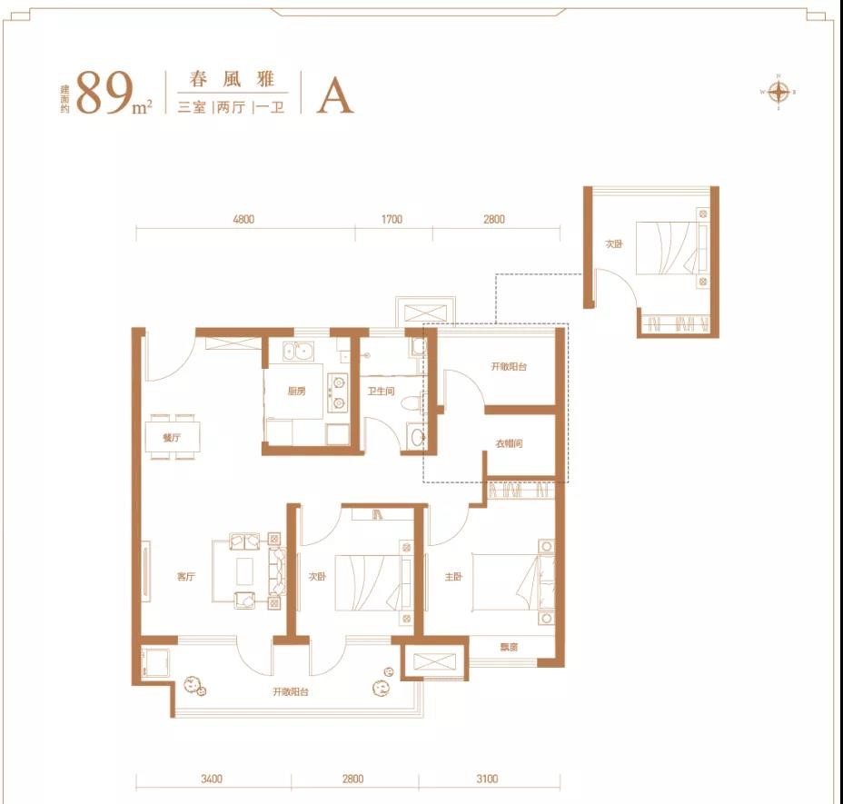 其中,建面约89㎡三室两厅一卫户型,以小面积段满足了一体化客餐厅、南向贯通式阳台、南北双阳台、主卧配置飘窗等功能区设计,刚需的面积段+改善的舒适度,性价比不言而喻。