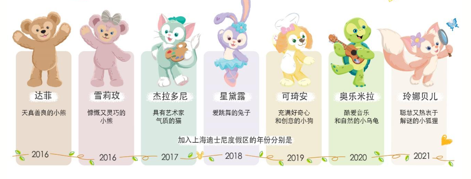 这些故事出现在每个乐园销售的玩偶标牌上,不断强化人们对于达菲宇宙故事线的认知。