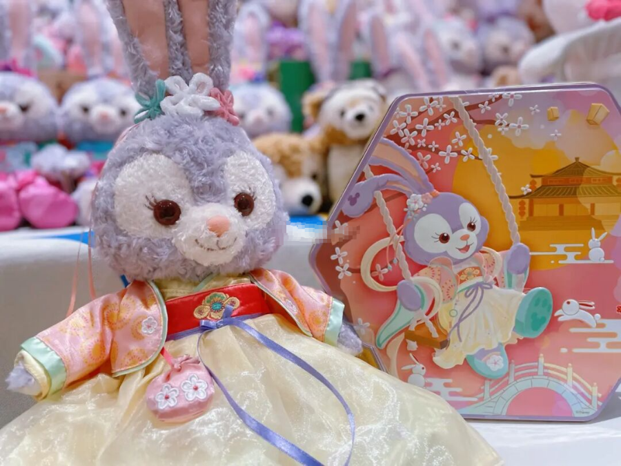 最早达菲初登陆上海迪士尼乐园时,消费者能买到的商品大多是以达菲本身驱动的,比如经典的达菲水手帽;而此后上海迪士尼乐园推出了越来越多结合中国本土节庆的季节性设计,比如春节期间穿上红色拜年小棉袄的达菲家族,初登陆时穿上复古上海小礼服的雪莉玫,十二生肖系列服装。不久前同样在社交媒体中引发热烈讨论的中秋“嫦娥”星黛露也是如此——这只小兔子穿上了一件精美的刺绣汉服,由于过于抢手,商品售罄后在二手平台价格一度炒至初始价格的三倍。