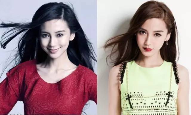 而黑发的angelababy不仅显得沉闷,整张脸看起来都有些暗沉,而右边咖色系的头发就衬得有气质多了。