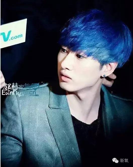 龙俊亨不仅发色是蓝色,还搭配了蓝色美瞳。