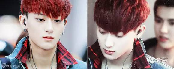 还有一个要说的就是红发。红发比起前面的那些浅色发色来说,适用人群更广,因为浅色只有皮肤很白的人染出来会比较好看。如图举例(下图只是两个普通路人绝对不是你家爱豆!)