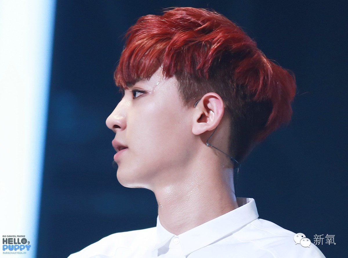 白贤,搭配红色的眼妆显得更加惊艳了。
