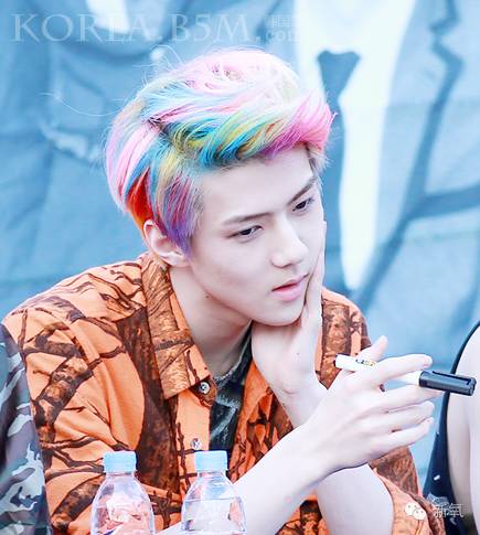 随后也有很多人开始染,比如较深一点儿的Xiumin。