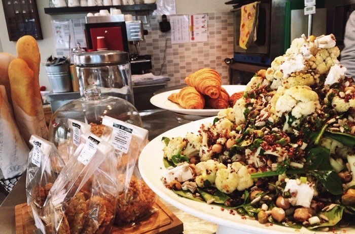 店虽然小小的,内里却大有乾坤,餐单上提供的食物种类丰富,有汤有饭,有三明治、沙拉、蛋糕和咖啡,啤酒和饮料也是选择多样;厨房是完全开放式的,食物制作过程尽收眼底,让人感觉安心。