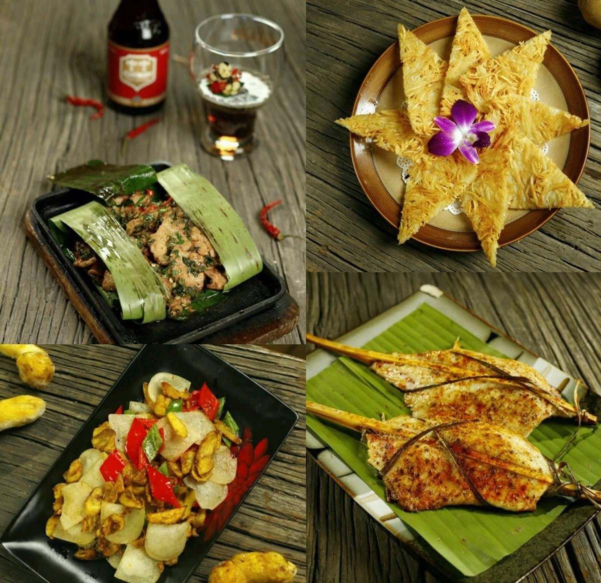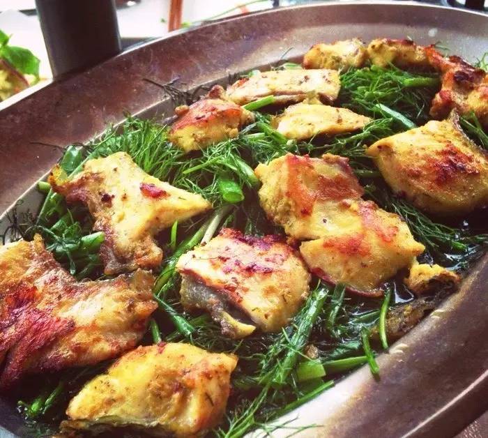 姜公吕望烤鱼是这里最受欢迎的一道菜,做法很有新意:烤鱼底下垫了嫩茴香,配上米粉、薄荷、虾片及特制酱汁,还可以加入花生碎和雨露一起吃,口味清淡却层次丰富。