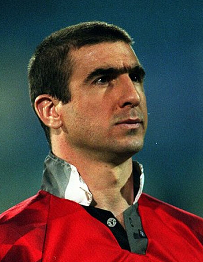 这是最能够体现坎通纳的自信的标志,他一直坚持把自己球衣的衣领立起来。之前没有足球运动员这样做,坎通纳开创了先河。在他所有的传奇照片中,你都看不到他的后颈。