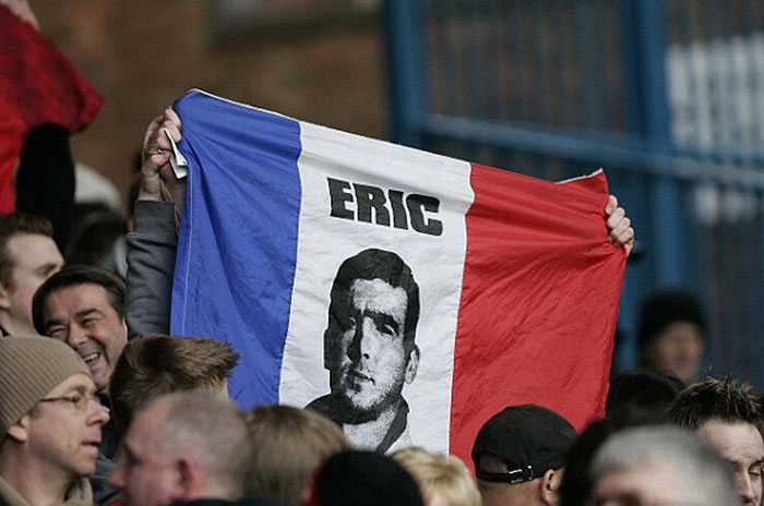 2005年,曼联队球迷高举法国国旗向坎通纳致敬。 图片来源:网络