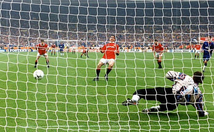 坎通纳的两个点球帮助曼联队在1994年足总杯决赛中战胜切尔西队夺冠。 图片来源:网络